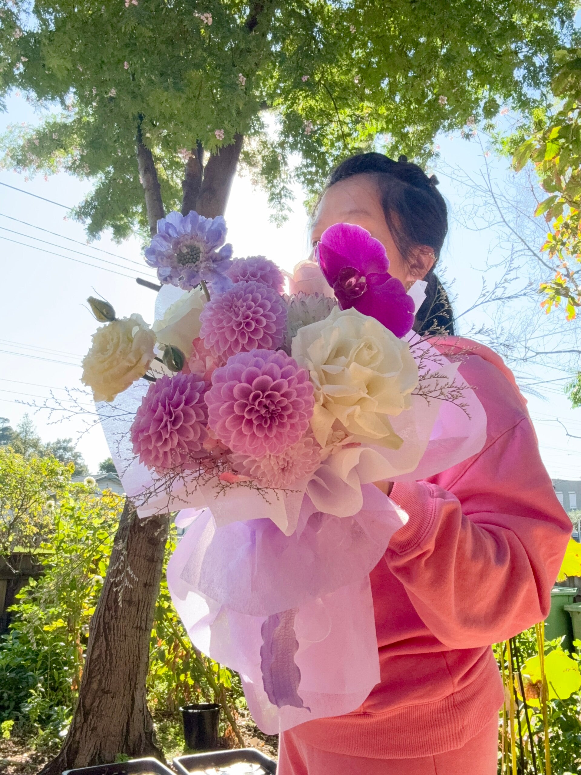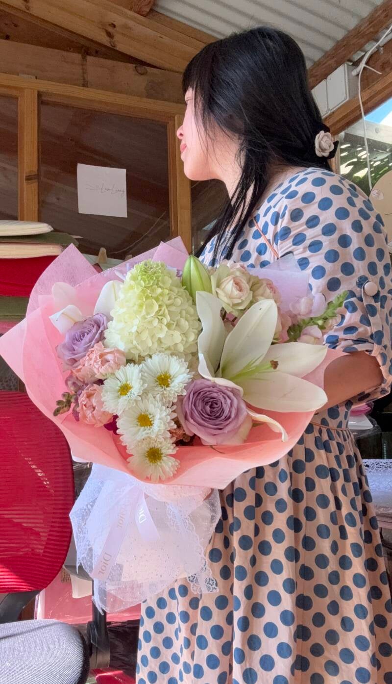 Seasonal flowers and florist choices! Beautifully wrapped and arranged.